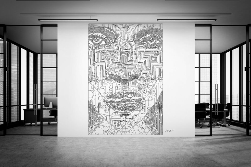 Large Format Large Vinyl Print The Face Black & White Guide Price £5000 Face 11 Wall Paper Guide Price £4000 The Mask Large Format Canvas Guide £3500 Contact